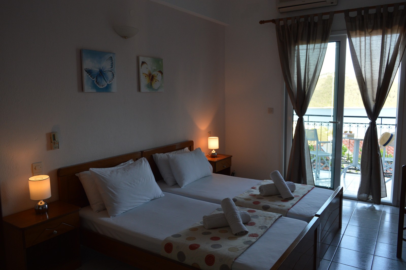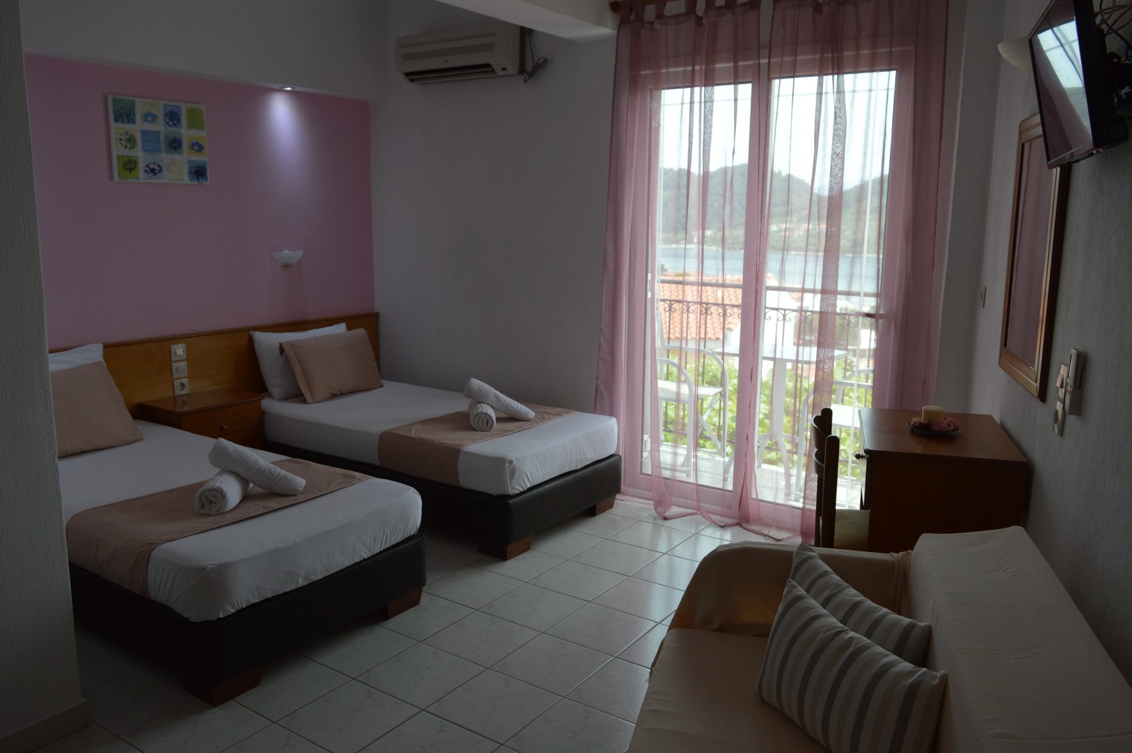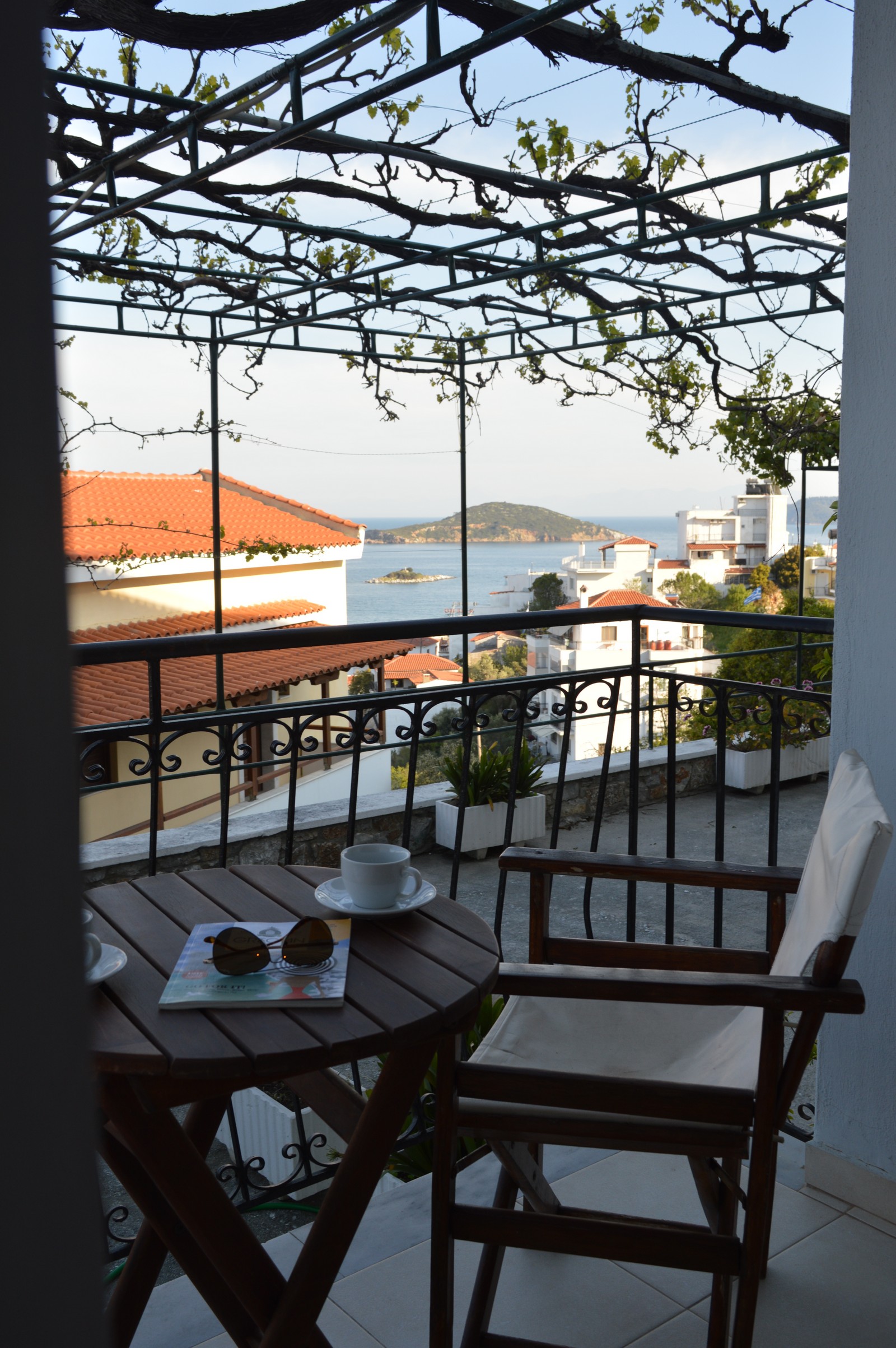 Enjoy the photos from our studios and apartments and the view to Skiathos port from our balconies.