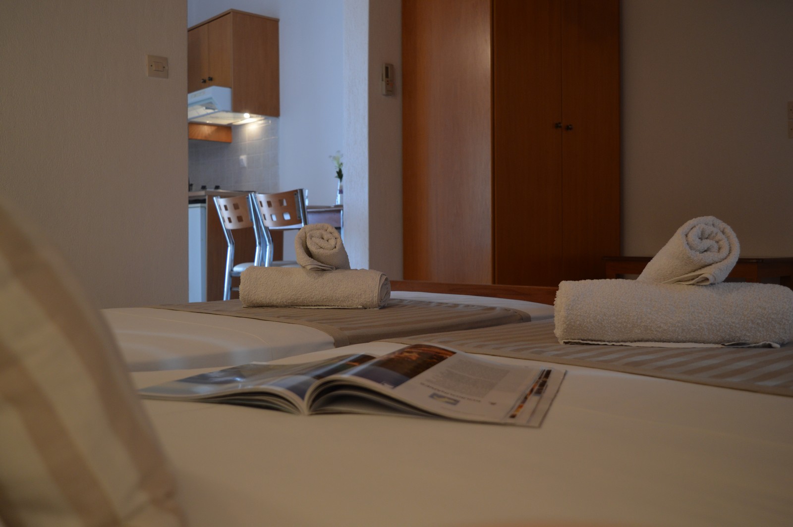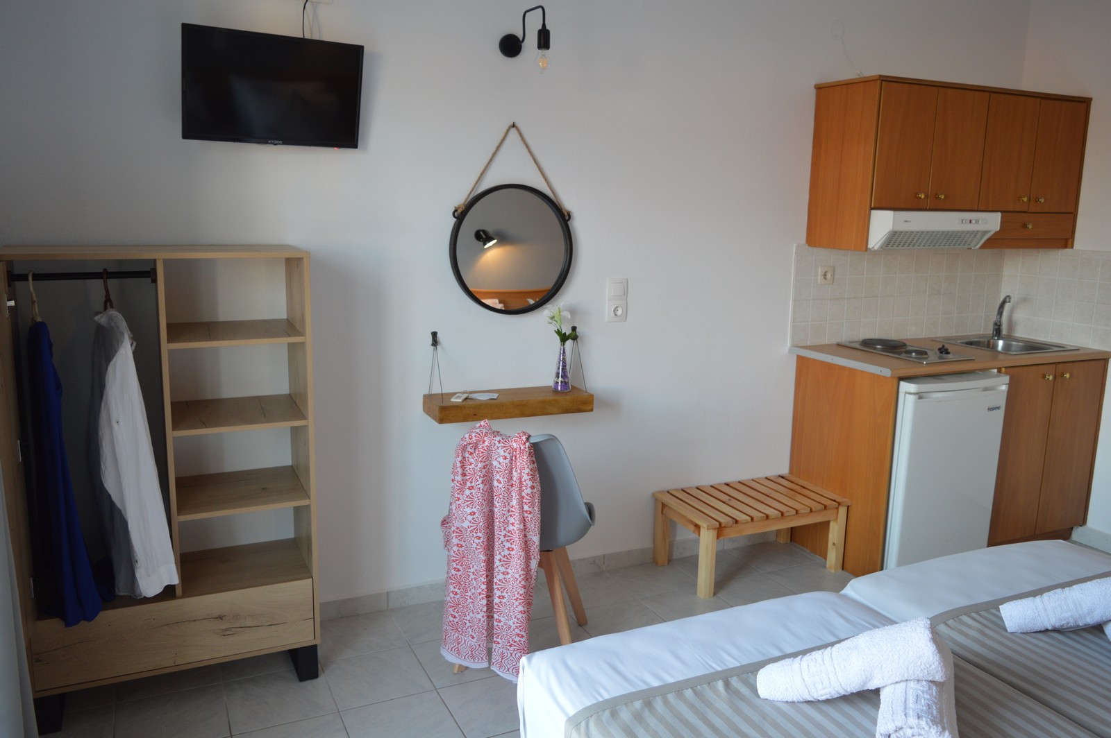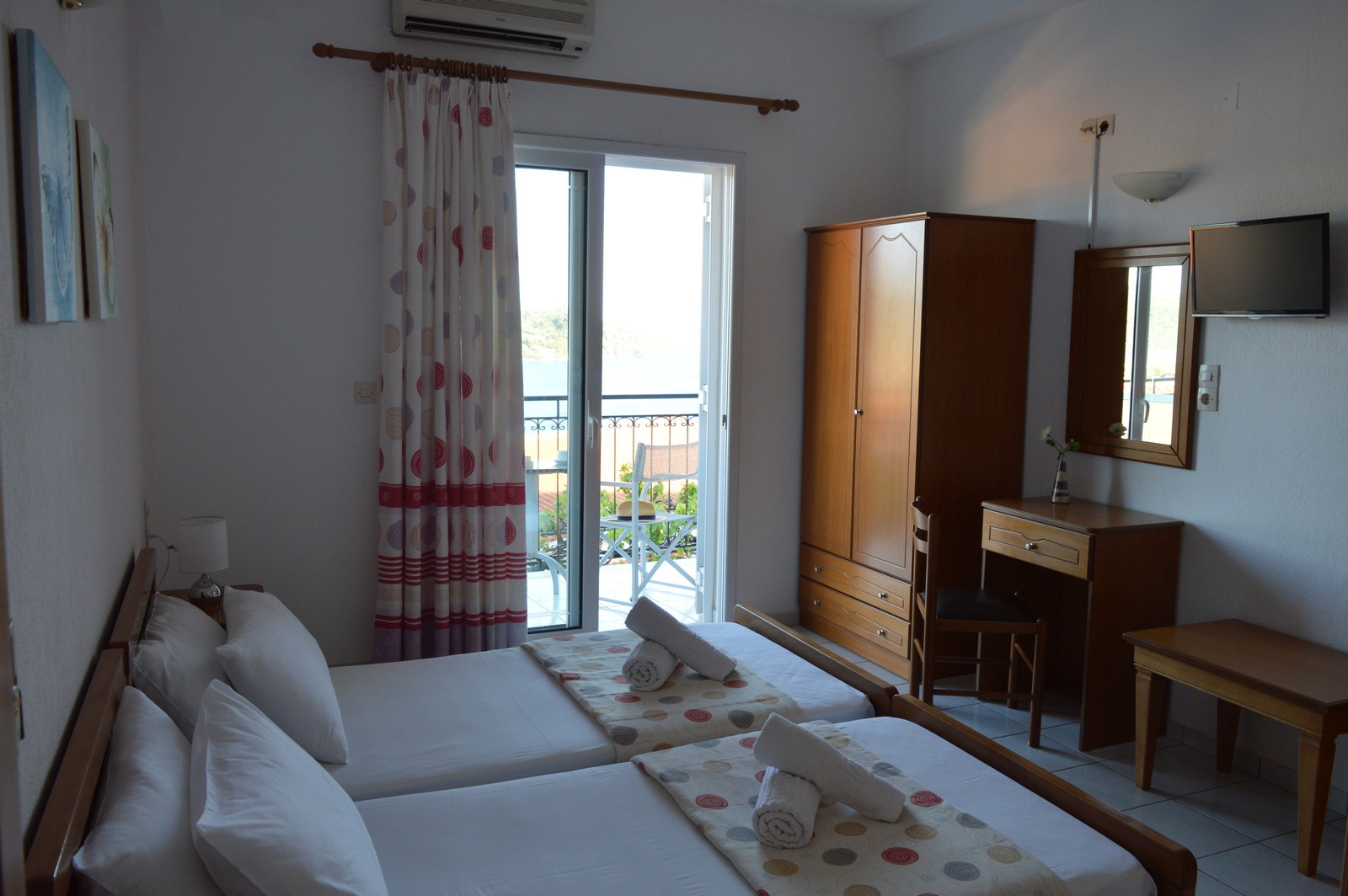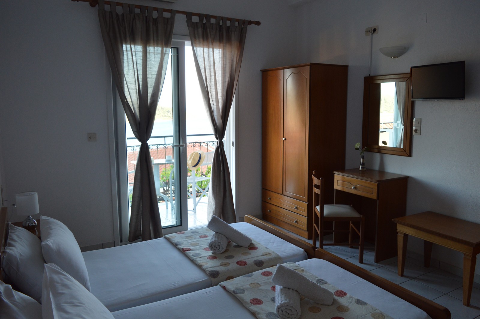 Enjoy the photos from our studios and apartments and the view to Skiathos port from our balconies.